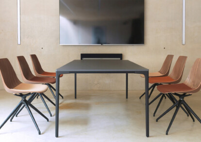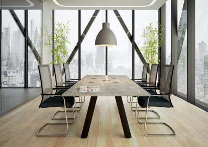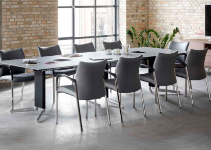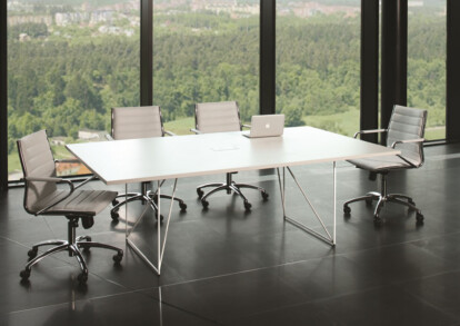Force delivers a striking boardroom table with a robust 100mm box section leg frame which really makes a statement about the kind of company you are. Available in a variety of sizes and finishes Force is the ideal choice for your next boardroom table.