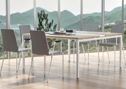 An exceptional feature of Air tables is the thin profile metal legs that convey a sense of lightness and at the same time ensure their durability and stability. Air meeting tables feature a round table top designed for a team of six people or a rectangular table top ideal for eight people.
