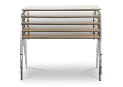 The Geo chunky table features a ø32mm steel A-Frame which is stackable up to 10 high. The table top is of 18mm laminated MDF in a range of colours. Table edge finished with spray on PU, available is a range of colours.