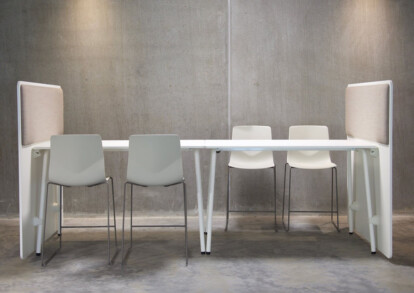 RoomInRoom is designed to create space and visual barriers. In an instant, you can create a room in the room and obtain better acoustics, increased concentration, and privacy – while still being part of the community. The melamine plate is quick and easy to lock onto the FourReal® tables.